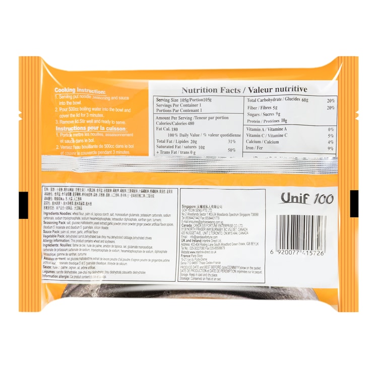 Unif Instant Noodles Pork Chop Flavor 105g Yamibuy Com